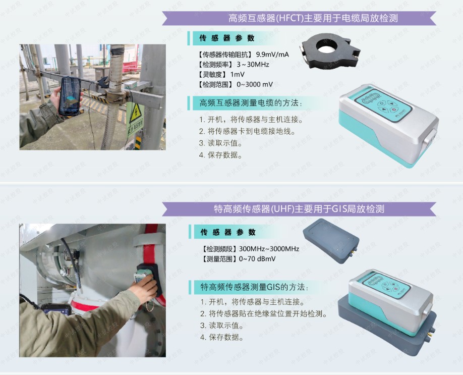配置不同传感器实现几乎所有的高压电气设备的局部放电检测;