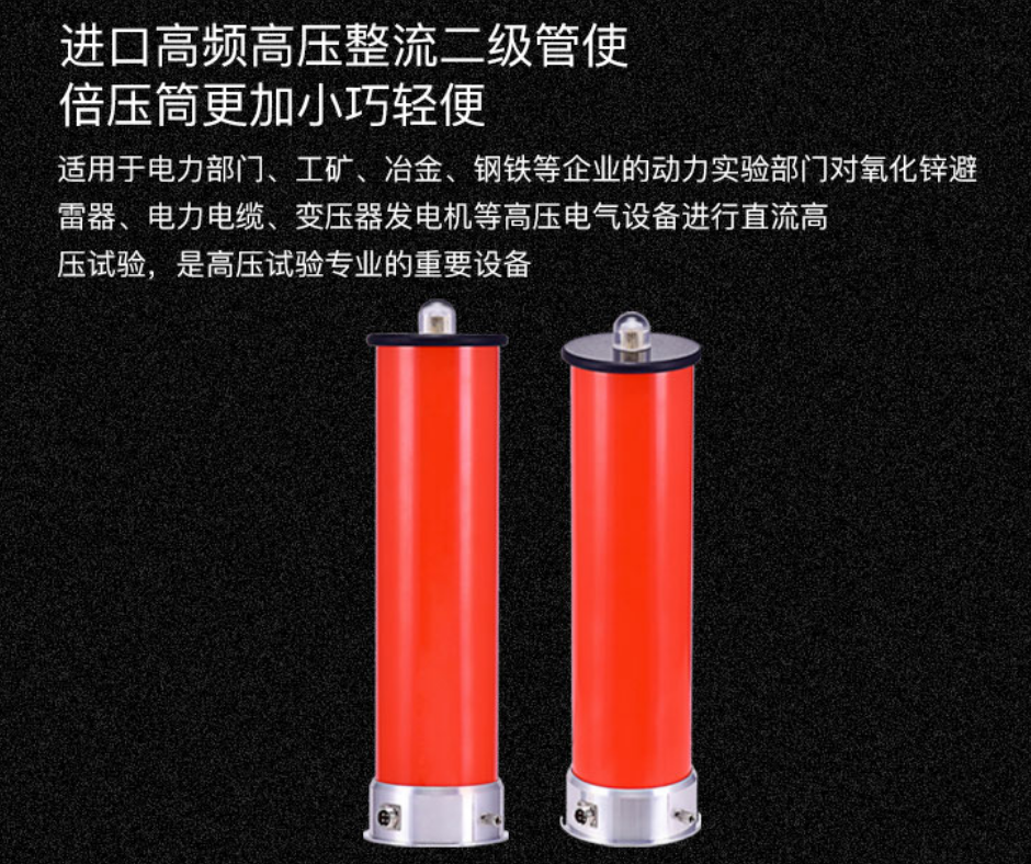 4、应用:直流高压发生器是电力部门现场高压试验时直流高压发生专用配套设备,同时还可以进行氧化锌避雷器直流参考电压试验及直流泄漏电流试验。直流高压发生器适用于电力部门、工矿、冶金、钢铁等企业动力部门对氧化锌避雷器、电力电缆、变压器、断路器、发电机等高压电气设备进行直流耐压试验或直流泄漏电流试验。