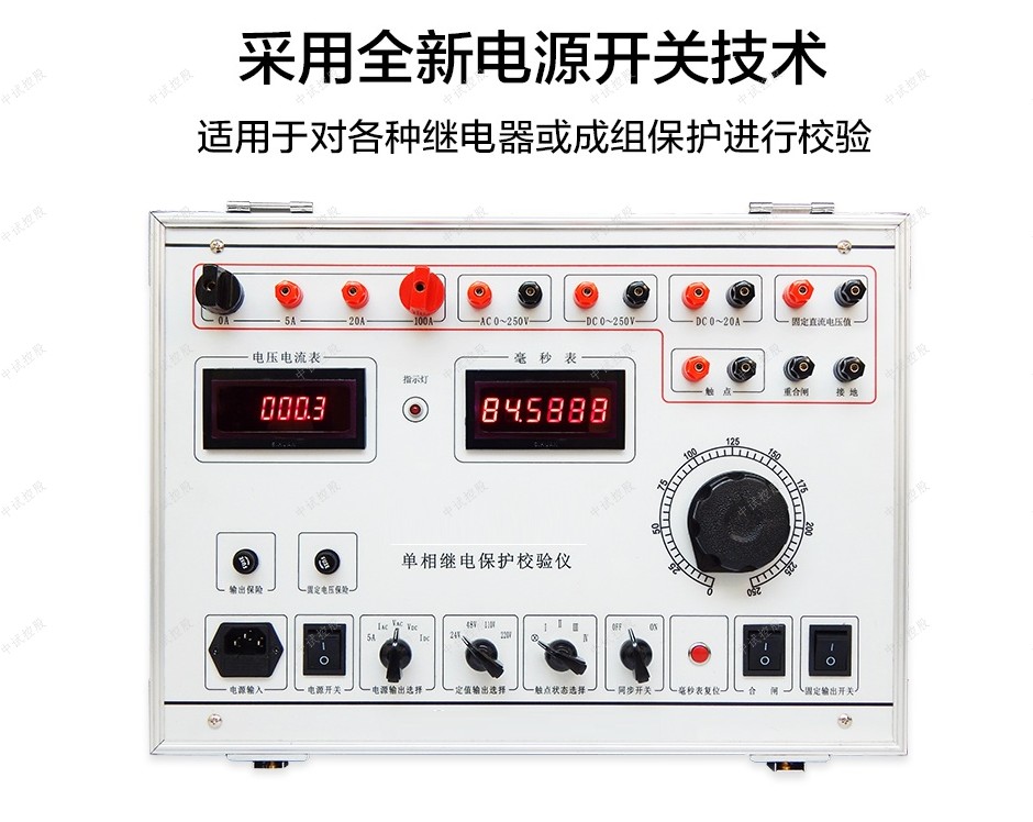 ZSJB-V 单相继电保护测试仪是在原JBC基础上开发成功的新一代校验装置。本仪器内部的交直流电压、电流源采用了新的电源技术,为现场人员将电源仪器技术用于其它试验提供了便利,本仪器实现简化操作的前提下,增加仪器的功能,能对各种常见的继电器进行各项校验且面板布置精巧,让操作者操作简便,一目了然,具有功能完善、选材优良、测试项目数据清晰、操作简单等优点,是电力继保部门的首选设备。因而迎得了广大用户的一致好评。