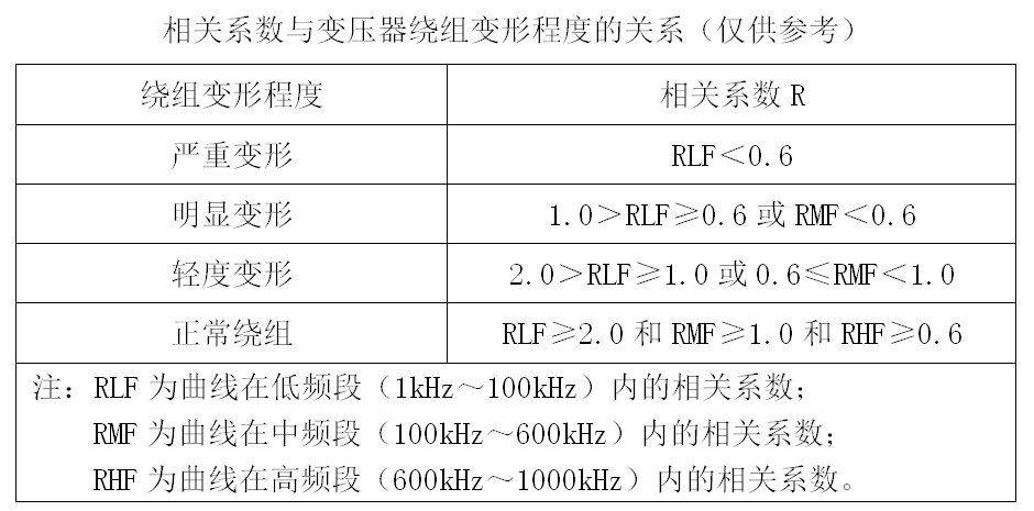 按国家电力行业标准DL/T911-2016、国际标准IEC60076-18采用频率响应分析法测量变压器的绕组变形,是通过检测变压器各个绕组的幅频响应特性,并对检测结果进行纵向或横向比较,根据幅频响应特性的变化程度,判断变压器绕组可能发生的变形情况。